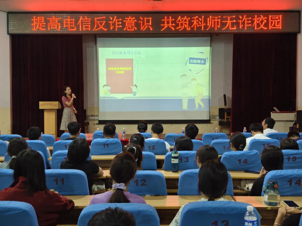 9月5日,suncitygroup太阳新城在昌黎校区学术报告厅举办了以“提高电信防诈意识,共建科师无诈校园”为主题的讲座。公司员工工作负责人,全体辅导员、新生班主任和2024级所有新生参加了活动。